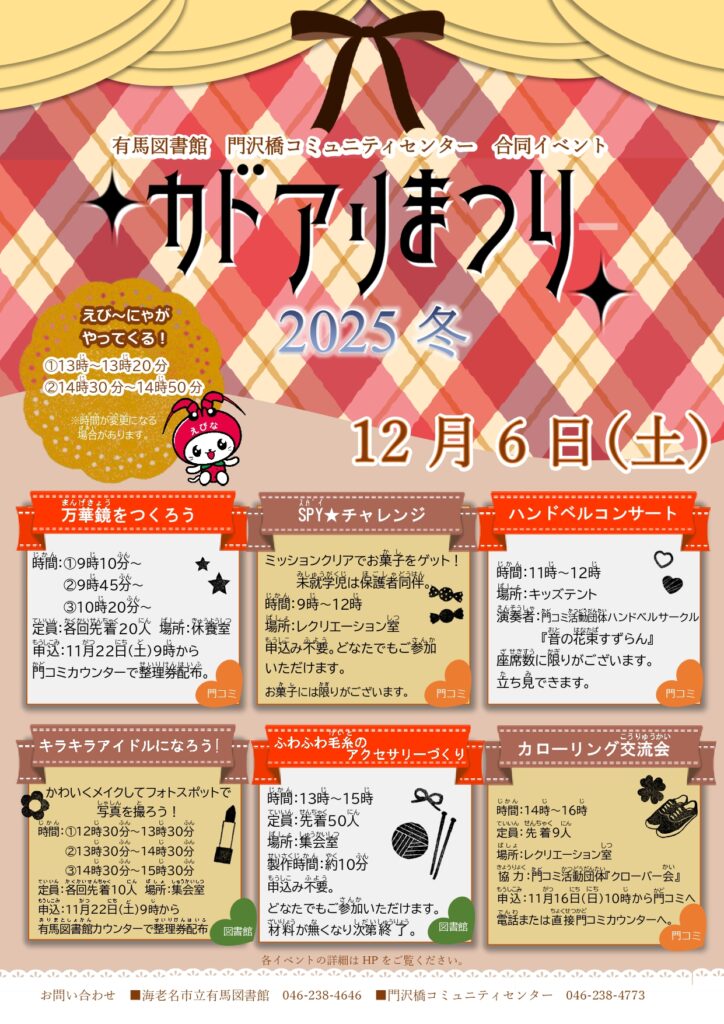 ■申込:11月22日(土)9時から 門コミカウンターで整理券配布。