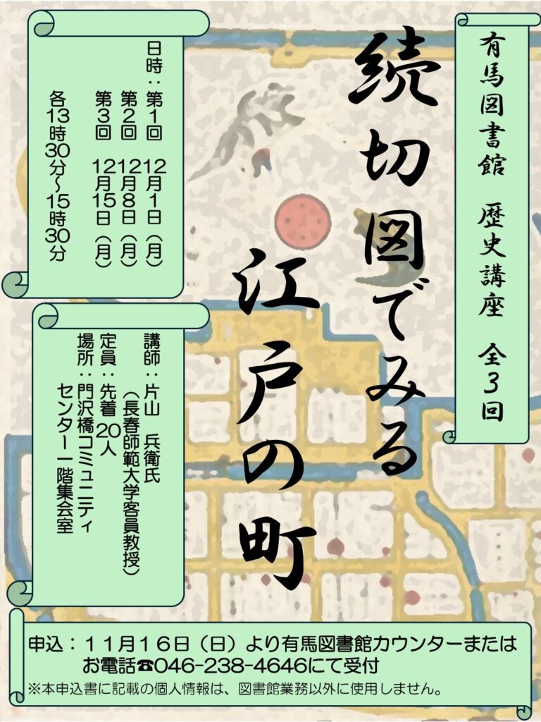 | 申込方法 | 11/16(日)より有馬図書館カウンターまたはお電話046-238-4646にて受付 |