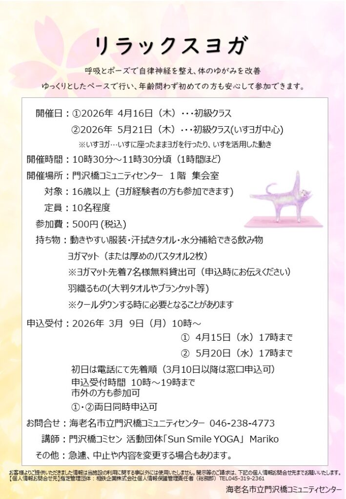 2026/04/16 リラックスヨガ・2026/05/21 リラックスヨガ(いすヨガ中心)